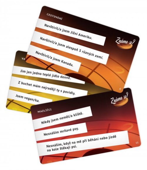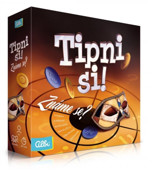 Viete, koľko vašich spoluhráčov už bolo niekedy v Afrike, koľko ich spí v nočnej košeli a koľko z nich pri vysávaní vysáva aj pavúky? Aj keby ste to nevedeli, môžete si tipnúť. V párty hre Tipni si! Poznáme sa? sa dozviete o svojich spoluhráčoch prvý posledný - hoci nikdy si nemôžete byť istí, kto danú odpoveď zvolil. A pokiaľ sa nehanbíte, môžete hrať otvorenú hru a staviť si priamo na odpoveď konkrétneho hráča! Čaká na vás 900 tvrdení, rozdelených do 6 okruhov: Cestovanie, Varenie, Obliekanie, Hobby, Domácnosť a Maznáčikovia. Takže sa o svojich spoluhráčoch dozviete skutočne hromadu nového - a napríklad aj prekvapivého. Hra Tipni si! Poznáme sa? obsahuje: 12 tipovačov a rozhodovačov, 300 kariet s otázkami, 6 hráčskych žetónov, 40 plastových mincí a pravidlá. Vhodné pod 15 rokov.