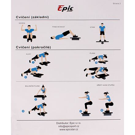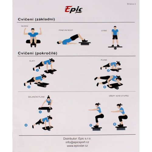 Balančná doska Epicstar je výsledkom spolupráce s elitnými športovcami a odborníkmi na pohyb. Ideálne pre všetkých, od úplných začiatočníkov až po skúsených športovcov. Je to dokonalý nástroj pre športy, kde je kľúčová rovnováha – napr. lyžovanie, snowboard, windsurfing, kiting, bojové umenia, tenis, atletiku, fitness a mnoho ďalších . Balančná doska sa smerom od stredu ku kraju rozširuje a umožňuje po zvládnutí základnej úrovne vykonávať aj triky. Pre vyššiu bezpečnosť je doska zospodu vybavená koncovými zarážkami, na ktoré môžete nalepiť samolepiace mäkké podložky pre zvýšenú ochranu podlahy. Cvičenie na balančnej doske Epicstar pomáha pri rehabilitácii kolien, členkov, bedier a preventívne predchádza zraneniu týchto kĺbov posilnením ich okolitých svalov - kĺby sú potom stabilnejšie. Vrchná doska balančnej dosky Epicstar je potiahnutá protišmykovou vrstvou príjemnou pre bosé chodidlá a zároveň dostatočne odolnou pre podrážky. Valec balančnej dosky Epicstar je možné používať aj v interiéri, bez nutnosti použitia koberca. - súčasťou balenia je vak pre ľahké prenášanie a uskladnenie - maximálna nosnosť: 150 kg - rozmer dosky: 87 x 30/27 x 2 cm (dĺžka x šírka na kraji/šírka uprostred x hrúbka) - rozmer valca: 10,5 cm x 41 ,5 cm (priemer x dĺžka) - hmotnosť dosky: 2,8 kg - hmotnosť valca: 1,2 kg - valec opatrený mäkkým filcom - nepotrebuje podložku na tvrdom povrchu - na spodnej strane balančnej dosky možno oba drevené dorazy pokryť vrstvou mäkkej podložky s tichým a ochranným účinkom - sú súčasťou balenia - odporúčaný vek: 9+