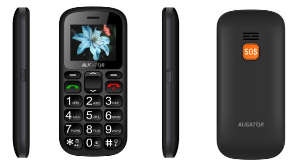 Klasický telefón pre seniorov s SOS tlačidlom, možnosťou obrázkového tel. zoznamu a funkciou určenia polohy SOS locator, s podporou dvoch SIM kariet. V dvoch farbách, čierno-šedá a bielo šedá . Stojan je súčasťou balenia.