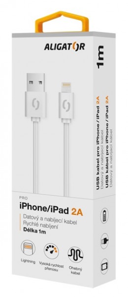 Dátový a nabíjací pre iPhone/iPad s lightning konektorom ALIGATOR: *Vysoko kvalitné konektory *Vysoká rýchlosť prenosu dát *Možnosť rýchleho nabíjania 2A *Dĺžka: 1m *Farba: biela