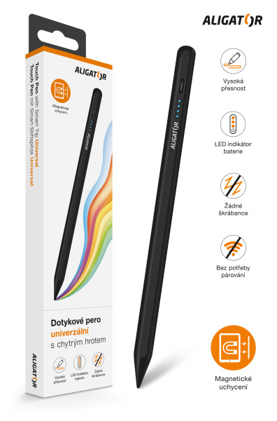 Kľúčové vlastnosti: *kompatibilný so systémom Android, iOS, iPadOS a Windows *chytrý hrot *vysoká presnosť dotyku s nulovou odozvou oneskorenia *skryté magnetické uchytenie - možnosť pricvaknutia na kovovú základňu zariadenia *funguje bez potreby párovania s tabletom či iným zariadením *LED indikátor batérie *žiadne škrabance *až 4 hodiny prevádzky na 1 nabitie (nabíjanie cca 40 minút) *USB-C konektor *náhradný hrot a nabíjací kábel v balení