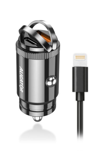 Výkonná a SMART Múdra Mini nabíjačka do auta ALIGATOR Power Delivery 30W, USB-C + USB-A, USB-C kábel pre iPhone / iPad