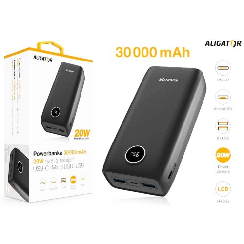 Kapacita 30000 mAh Typ batérie Li-Pol Výstupný prúd 1,5-4,5A Technológia nabíjania Power delivery Indikátor stavu nabitia Rýchlonabíjanie