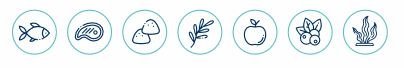 Zloženie : mäso (čerstvé rybie mäso zo sleďa 21,6 %, dehydrované hovädzie mäso 20,6 %, čerstvé hovädzie mäso 11,2 %, dehydrované rybie mäso 4 %), ryža, hydinový tuk, hrach, sušená jablčná dužina, repná vláknina , hydrolyzovaný rybí proteín 3%, kvasnice, lososový olej, minerálne látky, Ascophyllum Nodosum (Kelpa) PlaqueOff 0,1%, brusnica, glukosamín, chondroitín sulfát, Yucca schidigera.