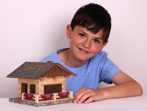 Drevená zlepovacia stavebnica. Stavby sa zlepujú lepidlom na papier a drevo, ktoré nie je súčasťou balenia. Počet dielov: 102 Rozmery zloženej stavebnice: 18 x 17 x 14 cm. Vek: 8+