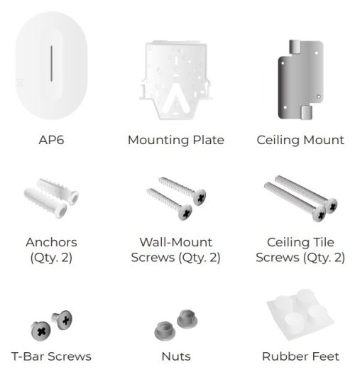 AP6 je dizajnovo podarené vnútorné hotspotové riešenie využívajúce štandard 802.11a/b/g/n/ac/ax a je vybavené anténnym systémom MIMO 2×2 . Prístupový bod podporuje aktívny PoE+ .