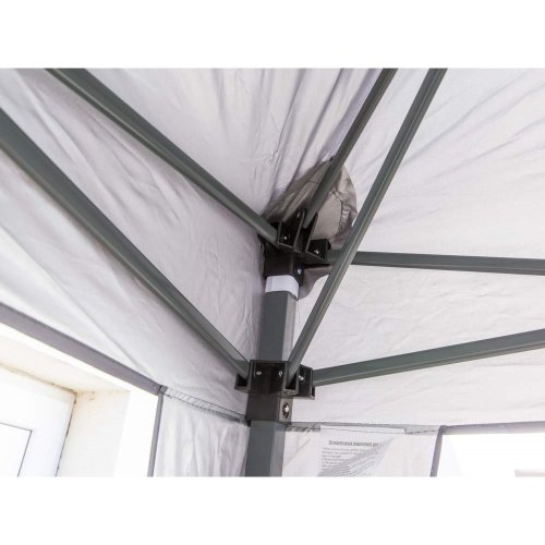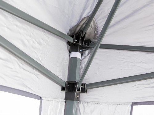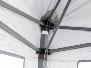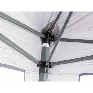 Skladací altánok SULTAN o rozmere 3 x 3 ma výškou 2,5 m so stabilnou nosnou konštrukciou nohy 30 x 30 / 25 x 25 mm a skladacím nožnicovým mechanizmom rebier 10 x 18 mm. Strešný poťah 210D Oxford je opatrený vnútornou striebornou vrstvou a dvojitým nástrekom pre zvýšenie odolnosti proti poveternostným vplyvom.