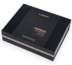 Amber Oud Private Edition od Al Haramain je unisex parfumovaná voda, ktorá stelesňuje elegantné spojenie sviežosti, exotiky a drevitého tepla. V úvode sa prelínajú aromatické zelené tóny s iskrivým bergamotom, ktoré vôni prepožičiavajú energiu a ľahkosť. V srdci sa rozvíja exotické spojenie melónu a ananásu, zahalené do hrejivého jantáru a sladkých akordov, ktoré dodávajú kompozícii zamatovú hĺbku. Základ vône je intenzívny a zmyselný – živica, myrha, vanilka, pižmo a drevité tóny vytvárajú luxusný a dlhotrvajúci záver, ktorý podčiarkuje výnimočnosť tejto kompozície. Amber Oud Private Edition je vôňa, ktorá v sebe spája sviežu eleganciu s hrejivou zmyselnosťou – ideálna voľba pre mužov aj ženy, ktorí chcú pôsobiť jedinečne a nezabudnuteľne. Vôňa bola uvedená na trh v roku 2023. Súčasťou sady je: