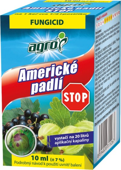 AGRO Americké múčnatky STOP je účinný postrekový fungicíd so systémovým pôsobením. Prípravok používajte na ochranu egrešov a čiernych ríbezlí proti americkému múčnatke. Ochránite tak rastlinu pred napadnutím (prevencia), ale aj po infekcii (kuratívny účinok). TIP: prípravok je možné použiť proti múčnatke aj na iných rastlinách (napr. jadroviny, uhorky, paradajky, jahody, papriky, cukety a pod.)