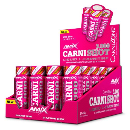 CarniShot 3000 je koncentrovaná forma l-karnitínu v kombinácii s taurínom a vitamínom B6. Odporúčané dávkovanie: