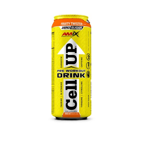 ! Obsahuje kofeín, nie je vhodné pre deti a tehotné ženy. Denná dávka (500 ml) obsahuje 200 mg kofeínu. 100 ml produktu obsahuje 40 mg kofeínu. Produkt nie je vhodný pre osoby trpiace precitlivenosťou na kofeín. CellUP® PreWorkout Drink je energeticky osviežujúci sýtený nápoj vynikajúci chuti s vysokým obsahom kofeínu, citrulínu, beta-alanínu a taurínu (1000 mg. Ďalej je obohatený o vitamíny skupiny B (B2, B5, B6), ktoré prispievajú k zníženiu miery úna. tréningom alebo inou fyzickou aktivitou.
