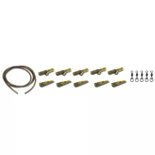 Táto sada je hotové riešenie pre väčšinu montáží s pevným olovom. Safety Lead Clip spoľahlivo drží olovo pri nahodení aj pri zdolávaní, ale v prípade odtrhnutia alebo v prekážkach umožní rybe rýchlo sa olova zbaviť. Obratlík Anaconda Camou Flex Ring Swivel s voľným flex krúžkom zlepšuje pohyblivosť náväzca a pomáha obmedziť zamotanie montáže. Súčasťou je aj PVC Anti Tangle Tube, ktorá chráni vlasec a drží zostavu čisto pri dne.