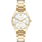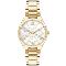 Dámske náramkové hodinky Napájanie z batérie Priemer puzdra 36,0 mm Puzdro v tvare kruhu Kovové puzdro Zlatavá farba puzdra Kovový ťah Zlatavá farba ťahu Ručičkový ciferník PERLEŤOVÁ farba ciferníka Ciferník s dvanástimi indexmi Materiál skla - minerálne sklo