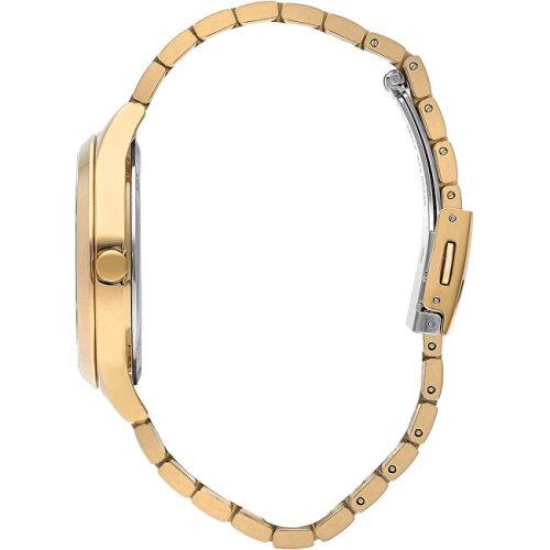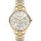 Dámske náramkové hodinky Napájanie z batérie Priemer puzdra 38,0 mm Puzdro v tvare kruhu Kovové puzdro Zlatavá farba puzdra Kovový ťah Zlatavá farba ťahu Ručičkový ciferník Strieborná farba ciferníku Ciferník s dvanástimi indexmi Materiál skla - minerálne sklo