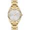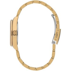 Dámske náramkové hodinky Napájanie z batérie Priemer puzdra 31,0 mm Puzdro v tvare kruhu Kovové puzdro Zlatistá farba puzdra Kovový ťah Zlatistá farba ťahu Ručičkový ciferník Strieborná farba ciferníka Ciferník s dvanástimi indexmi Materiál skla - minerálne sklo