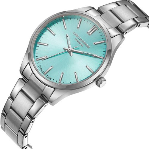 Dámske náramkové hodinky Napájanie z batérie Priemer puzdra 34,0 mm Puzdro v tvare kruhu Kovové puzdro Strieborná farba púzdra Kovový ťah Strieborná farba ťahu Ručičkový ciferník SVETLO MODRÁ farba ciferníka Ciferník s dvanástimi indexmi Materiál skla - minerál