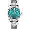 Dámske náramkové hodinky Napájanie z batérie Priemer puzdra 41,0 mm Puzdro v tvare kruhu Kovové puzdro Strieborná farba puzdra Kovový ťah Strieborná farba ťahu Ručičkový ciferník SVETLO MODRÁ farba ciferníka Ciferník s dvanástimi indexmi Materiál skla - minerál