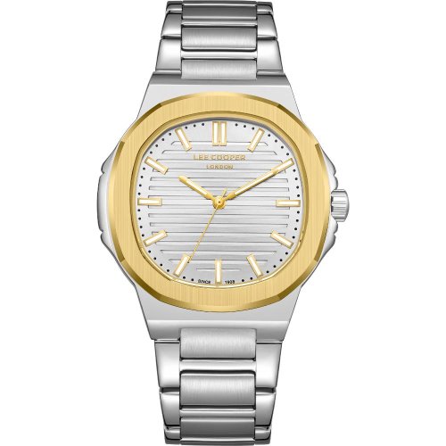 Pánske náramkové hodinky Napájanie z batérie Priemer puzdra 45,0 mm Puzdro v tvare štvorca Kovové puzdro Zlatavá farba puzdra Kovový ťah Strieborná farba ťahu Ručičkový ciferník Šedá farba ciferníku Ciferník s dvanástimi indexmi Materiál skla - minerálne sklo