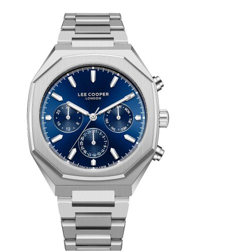Pánske náramkové hodinky Napájanie z batérie Priemer puzdra 43,0 mm Puzdro v tvare štvorca Kovové puzdro Strieborná farba puzdra Kovový ťah Strieborná farba ťahu Ručičkový ciferník TMAVO MODRÁ farba ciferníka Ciferník s dvanástimi indexmi Materiál skla - minerál