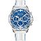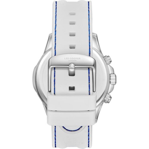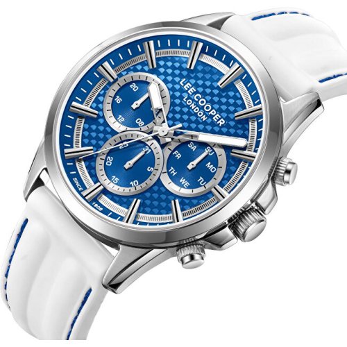 Pánske náramkové hodinky Napájanie z batérie Priemer puzdra 44,0 mm Puzdro v tvare kruhu Kovové puzdro Strieborná farba puzdra Biela farba ťahu Ručičkový ciferník Modrá farba ciferníka Ciferník s dvanástimi indexmi Materiál skla - minerálne sklo Odolné proti vode