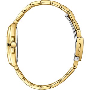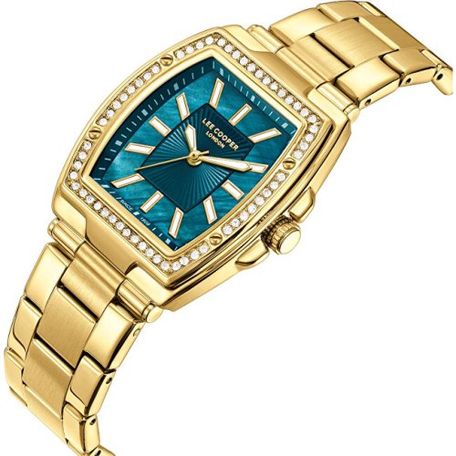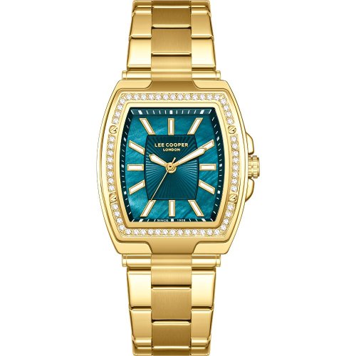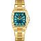 Dámske náramkové hodinky Napájanie z batérie Priemer puzdra 30,0 mm Puzdro v tvare obdĺžnika Kovové puzdro Zlatavá farba puzdra Kovový ťah Zlatavá farba ťahu Ručičkový ciferník Zelená farba ciferníka Ciferník s dvanástimi indexmi Materiál skla - minerálne sklo