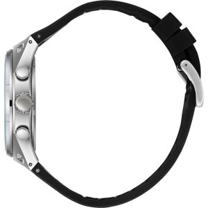 Pánske náramkové hodinky Napájanie z batérie Priemer puzdra 45,0 mm Puzdro v tvare kruhu Kovové puzdro Strieborná farba púzdra Kožený ťah Strieborná farba ťahu Ručičkový ciferník Čierna farba ciferníka Ciferník s dvanástimi indexmi Materiál skla - minerálne sklo Odol