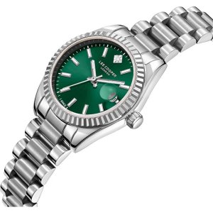 Dámske náramkové hodinky Napájanie z batérie Puzdro v tvare kruhu Kovové puzdro Strieborná farba puzdra Kovový ťah Strieborná farba ťahu Ručičkový ciferník Materiál skla - minerálne sklo Odolné proti vode pri bežnom nosení