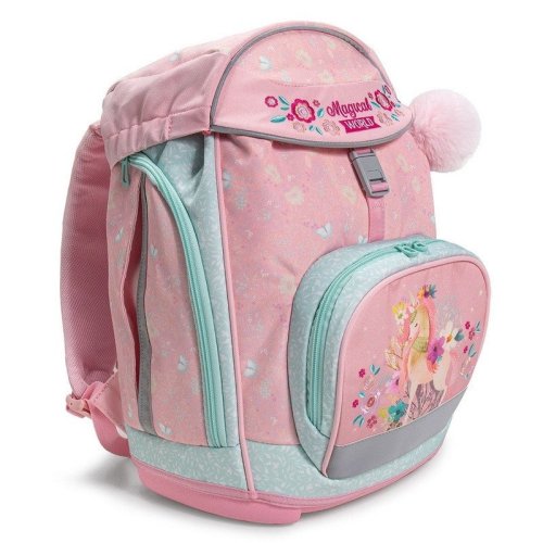 Anatomický školský plecniak MAGICAL WORLD vyznačujúci sa týmito top vlastnosťami: <br> • 3D ergonomický dizajn chrbtového dielu plecniaka pre správne rozloženie hmotnosti s vysoko kvalitnou sieťovinou s mäkkým polstrovaním <br> • nastaviteľné, ergonomicky tvarované ramenné popruhy a regulovateľný hrudný popruh s praktickým. úložnou priehradkou spevnený s gumou po bokoch pre prispôsobenie sa obsahu, vhodný do formátu A4. • zapínanie hornej klopy je na magnet s poistným uzáverom. vrecká na zips po celej bočnej dĺžke a šírke <br> • predné vrecko na desiatu alebo na peračník s izolačnou fóliou zvnútra vonkajšie vrecká, obojstranné zapínanie na zips <br> • mäkký plyšový prívesok - ružová chlpatá guľka - vhodný na kľúče br g <br> • objem 25 litrov