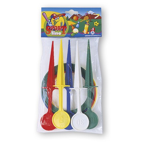 Veselá hra hádzanie krúžkov na cieľové hroty pre malých aj veľkých. Hra podporuje motoriku, sústredenie a trpezlivosť. Vyrobené z kvalitných plastov v Taliansku. Obsah balenia: 5 hádzacích krúžkov, 5 obodovaných hrotov. Balené v priehľadnom sáčku 18 x 37 cm. Váha: 0,18 kg. Odporúčaný vek od 36 mesiacov.