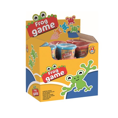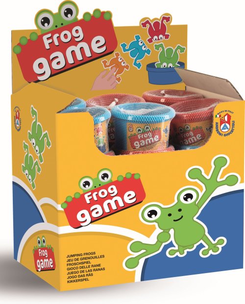 Zábavná hra žabky pre malé aj veľké, rozvíjajúce zručnosť a trpezlivosť hráčov. Cieľom je doskočiť čo najďalej. Hra obsahuje 12 plastových žabičiek v 4 farbách veľkosti 5 x 5,5 x 2,5 cm. Vyrobené z kvalitných plastov v Taliansku. Rozmer krabičky: priemer 12 cm, výška 8,5 cm. Odporúčaný vek od 36 mesiacov.