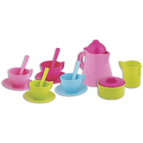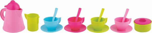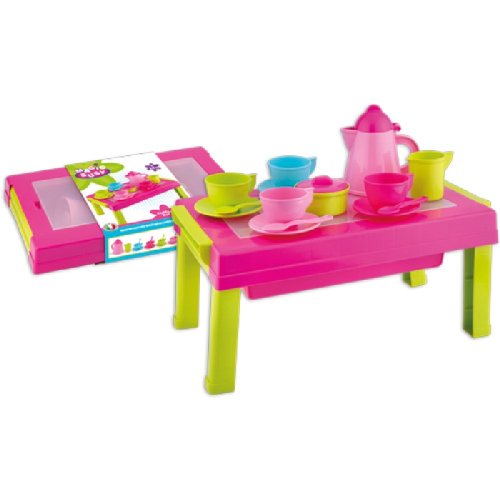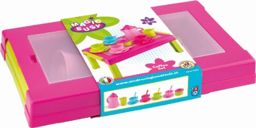 Kávová súprava so skladacím, úložným stolíkom, vyrobená z kvalitných plastov v Taliansku. Súprava obsahuje: Kanvicu, 4 hrnčeky s podšálkami na kávu alebo čaj, 4 kávové lyžičky, cukorničku s viečkom, kanvičku na mlieko a ľahko rozložiteľný stolík, ktorý zároveň slúži aj ako úložný box. Rozmery rozloženého stolíka 41 x 26 x 22 cm (dx š xv), rozmery zloženého stolíka - boxu: 41 x 24,5 x 10 cm (dx š xv). Odporúčaný vek od 18 mesiacov.
