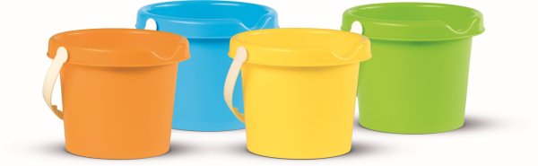 Kýblik na piesok malý, vyrobený z kvalitných plastov v Taliansku. Vedierko: priemer 13 cm, výška 11 cm, váha 0,09 kg. Odporúčaný vek od 12 mesiacov. Výrobca, talianska firma Androni Giocattoli sídliaca neďaleko Milána, sa špecializuje na výrobu plastových hračiek na piesok a záhradu a tiež stavebníc UNICO Plus už od roku 1974. Jej mottom je heslo: Androni Toys: Kvalita vyrobená v Taliansku. Používané plasty sú pevné, ale zároveň pružné a pri bežnom hraní nedochádza k ich praskaniu. Vydržia aj väčšiu záťaž a preto sú výrobky vhodné aj do škôlok, kde takmer denne prechádzajú zaťažkávacou skúškou.
