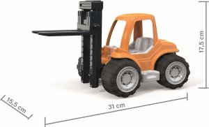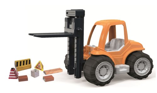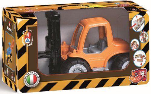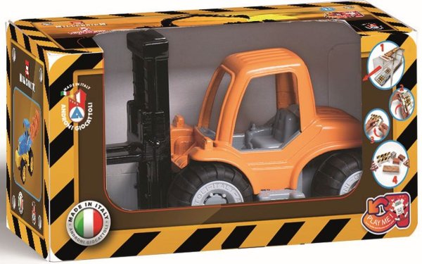 Plastový vysokozdvižný vozík z radu Millenlium s pogumovanými kolesami je odolná hračka pre deti. Má pohyblivú zdvíhaciu vidlicu, ktorá umožňuje realistickú manipuláciu s nákladom a podporuje fantáziu pri hre. Súčasťou balenia sú aj kartónové bloky, ktoré umožňujú vytvárať rôzne herné scenáre a podporujú fantáziu a jemnú motoriku. Vyrobené z kvalitných plastov v Taliansku. Rozmery balenia: 32 x 16 x 17,8 cm (dx š xv). Váha: 0,55 kg. Odporúčaný vek od 10 mesiacov.