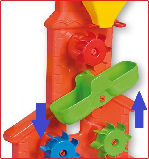 Mlynček na piesok a vodu s tromi lopatkovými kolesami, deliacim žliabkom a širokou základňou, vyrobený z kvalitných plastov v Taliansku. Pohyblivé šupátko pod násypkou reguluje veľkosť otvoru, čo bádavé deti veľmi ocenia. Mlynček: výška 42 cm, šírka základne 27 cm, váha: 0,50 kg. Odporúčaný vek od 12 mesiacov.