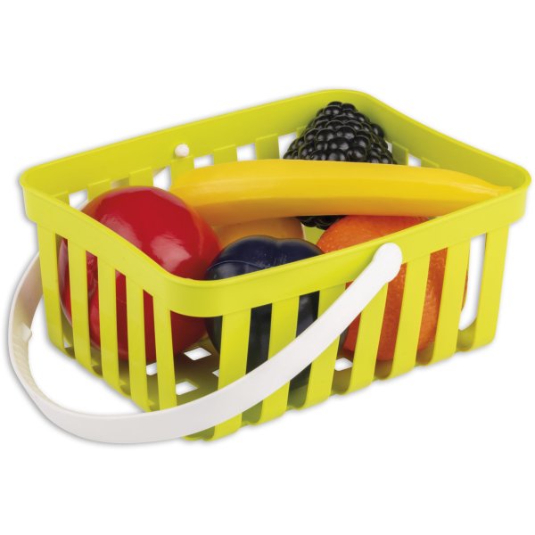 Nákupný košík so 6 kusmi vierohodne vyzerajúceho ovocia. Vyrobené z kvalitných plastov v Taliansku. Rozmery: 17 x 13,5 x 8 cm (dx š xv), váha 0,19 kg. Odporúčaný vek od 12 mesiacov.