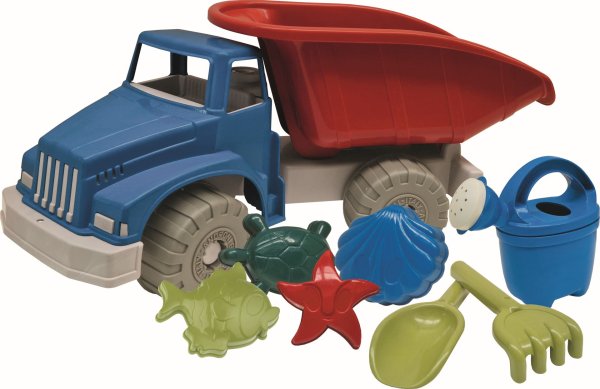 8dielna sada na piesok, vyrobená z kvalitných recyklovaných plastov v Taliansku. Obsahuje: Auto, kanvičku, lopatku, hrabličky a štyri formičky s morskou tematikou. Rozmery auta: 46 x 17,5 x 20,5 cm (dx š xv), kanvička: 0,5 l. Váha sady: 0,931 kg. Odporúčaný vek od 12 mesiacov.