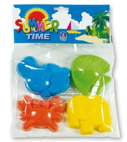 Súprava obsahuje 4 kusy formičiek v tvare zvieratiek (slon, ryba, zajačik a krab).