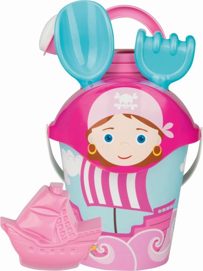 6dielna sada na piesok, vyrobená z kvalitných plastov v Taliansku. Obsahuje: vedierko, kanvičku 0,5 l, sitko, lopatku, hrabličky a tematické tvorítko. Vedierko: priemer 17 cm, výška 16 cm. Súprava: výška 36 cm, váha 0,41 kg. Odporúčaný vek od 12 mesiacov.