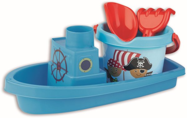 4dielna sada na piesok s loďou, vyrobená z kvalitných plastov v Taliansku. Obsahuje: Loďku, kýblik, lopatku a hrabličky. Loďka: dĺžka 35 cm, šírka 16 cm. Vedierko: priemer 13 cm, výška 11 cm. Súprava: 35 x 16 x 15 cm (dx š xv), váha 0,35 kg. Odporúčaný vek od 12 mesiacov.