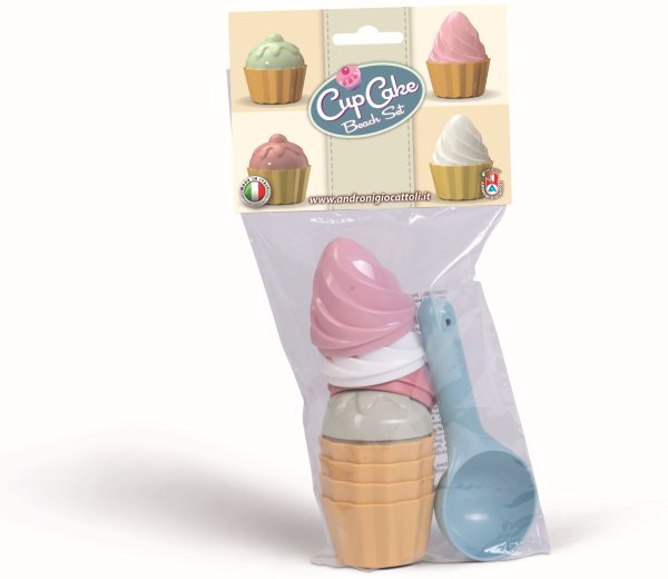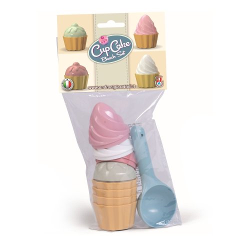 9dielna sada tvorítok na piesok - tortičky. Vyrobené z kvalitných plastov v Taliansku. Obsahuje: Lopatku na zmrzlinu a 8 tvorítok na tortičky. Balené v sáčku s rozmermi 15 x 29 cm. Váha: 0,17 kg. Odporúčaný vek od 10 mesiacov.