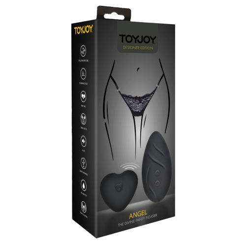 Angel je erotická sada pre ženy, ktorá obsahuje sexy krajkové pánty s ,,vreckom" a vibrátor, ktorý je tvarovo prispôsobený ženskému klinu a presne pasuje do ",vrecka" u nohavičiek. Súčasťou je aj diaľkové ovládanie v tvare srdiečka, ktorým si nastavíte potrebný vibračný mód vibrátora.