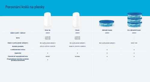 Fólia použitá v kazetách je hygienická a vydrží vám dlho. Jedna kazeta pojme +- 180 plienok. Kazeta je kompatibilná s Angelcare košmi Classic a Dress Up.