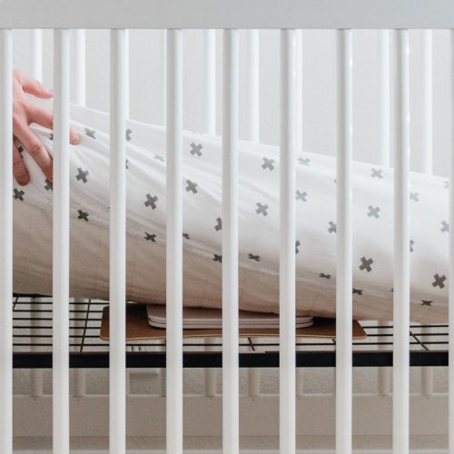 Drevenú podložku umiestnite pod senzorovú podložku aby ste zaistili správnu funkciu senzorovej podložky - ktorá je tak bezpečne umiestnená a nehrozí riziko jej vypadnutia medzi rošty postieľky.