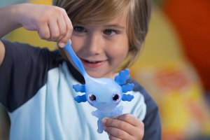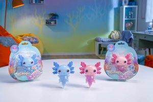 Figúrka axolotla, ktorá po ponorení do vody začne svietiť. Táto hračka je vyrobená z mäkkého, pružného materiálu, ktorý je príjemný pre detské ručičky.