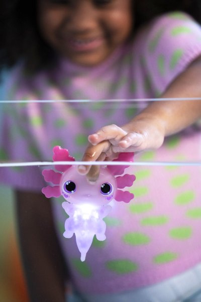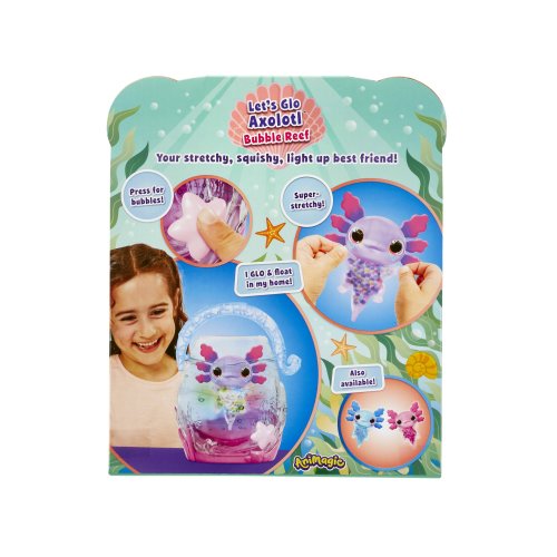 Figúrka axolotla, ktorá po ponorení do vody začne svietiť. Táto hračka je vyrobená z mäkkého, pružného materiálu, ktorý je príjemný pre detské ručičky. Akvárium pre axolotla, kde môžeš tvoriť bubliny.