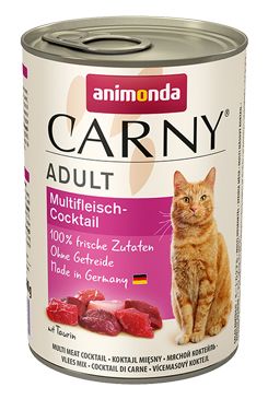 Konzerva s mäsovou zmesou. Kompletné krmivo pre dospelé mačky.
