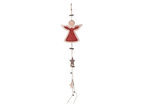 Anjel drevo 150x160mm na zavesenie, prírodný s glitrom, červená