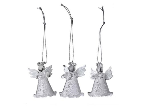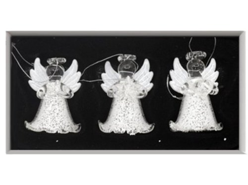 Anjel sklo 3 ks v krabičke na zavesenie, pieskovaný, biely