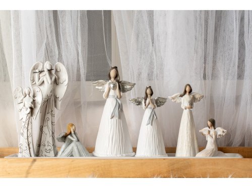 Anjelik je vhodný ako zimné či vianočné dekorácie, do aranžmánov, na poličku alebo ako drobný darček. Elegantná farebná kombinácia dodá interiéru pokojnú a sviatočnú atmosféru. Tovar je dodávaný v mixe. Doručovaný tovar je vyberaný náhodne a nie je možné vybrať konkrétne prevedenie.