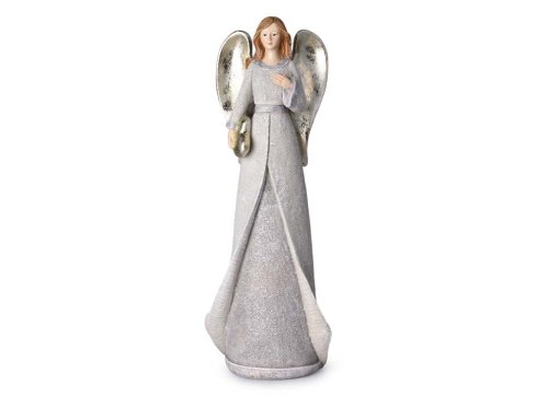 Tento nežný anjelik je vyrobený z polyresinu a je sfarbený do béžovej farby s trblietkami. Jeho rozmery sú 135x368mm, takže je ideálny na umiestnenie na stôl, komodu alebo krbovú rímsu. Anjelik má jemné rysy a roztomilý výraz, ktorý vnesie do vášho domova radosť a optimizmus.